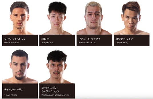 なお、K-1 WORLD GPスーパー・ライト級タイトルマッチで王座防衛するはずのヨードクンポン・ウィラサクレックが規定体重の100gオーバーのため王座剝奪。稲垣柊が勝者の場合のみ王座獲得となる。(※ヨードクンポンは1ラウンドに減点1でスタート。ファイトマネー20%減額。6オンス、8オンスのハンデも稲垣側が拒否したため、8オンスで行う)