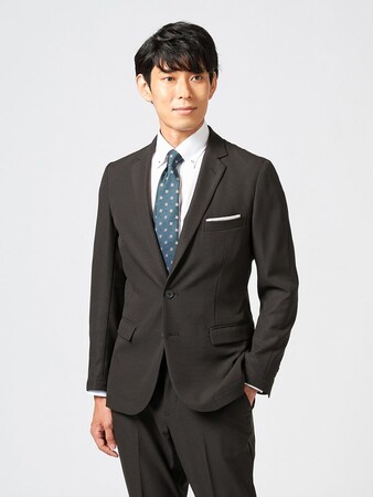 「毎日着るお仕事着だからこそ」ラクな着心地、簡単ケアを追求し“快適仕立て”をコンセプトにしたビジネスウェアです。前側は一般的なジャケットと同様のセットインスリーブ仕様、後ろ側は肩回りの動きやすさを追求したラグランスリーブ仕様を採用したジャケットと、股下切り替えを入れたガゼットクロッチ仕様のパンツのセットアップで、スポーツウェアのようなラクな着心地が特長です。自転車通勤や車通勤など体を動かすことが多い方や、WEB会議などを利用するテレワークの方にオススメの一着です。もちろんご自宅でお洗濯可能なウォッシャブル機能、撥水加工や防シワ加工も施しているためケアまでラクなアイテムです。