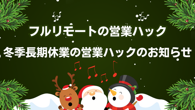 従業員フルリモートで営業支援を行う株式会社営業ハックは、2023年12月23日(土)~1月8日(月)を冬季休業とさせていただきます。