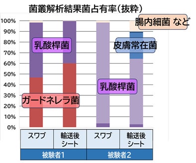 おりものシートで採取した検体について菌叢解析も実施し、BV関連菌の有無についてスワブ検体と同傾向であることを評価できました。