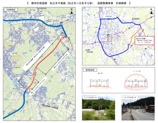 都市計画道路松之木千島線(松之木~江名子工区)は、市街地中心部の交通混雑の解消や、通過交通の迂回を目的とする内環状線を構成する道路です。