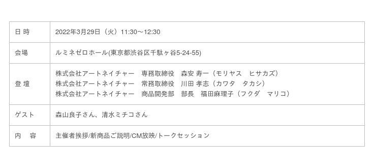 https://www.artnature.co.jp/ladies/feelin/ (2022年3月30日公開予定)