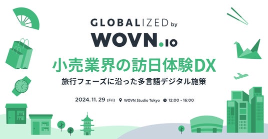 Web サイト多言語化ソリューション『WOVN.io(ウォーブン・ドットアイオー)』を提供する Wovn Technologies株式会社(本社:東京都港区、代表取締役社長:林 鷹治、以下 WOVN)は、2024年11月29日(金)12時から、GLOBALIZED 『小売業界の訪日体験 DX』を無料開催いたします。