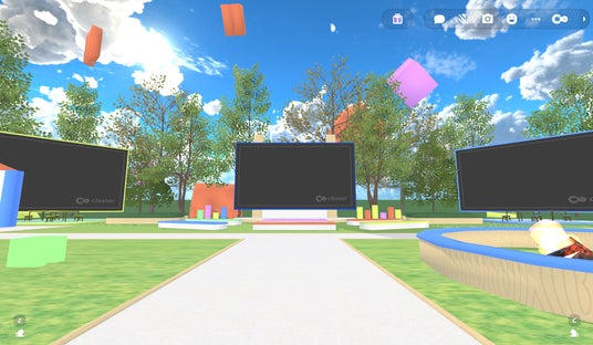 「cluster」は、スマートフォンやPC、VR機器など様々な環境からバーチャル空間に遊びに行くことができる、マルチプラットフォーム対応のバーチャルSNSです。音楽ライブや発表会などのイベントのほか、いつでも参加できるバーチャルワールドでチャットやゲームを楽しめます。