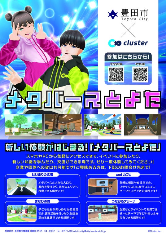 クラスターは豊田市とともに市民・企業・行政が一体となってメタバースを活用できる環境整備を進めてまいります。今後の活動もご注目ください。