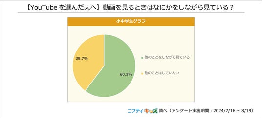 60.3%の子どもたちが、ただYouTube動画を見るのではなく、なにかをしながらYouTubeを見ていると回答しました。