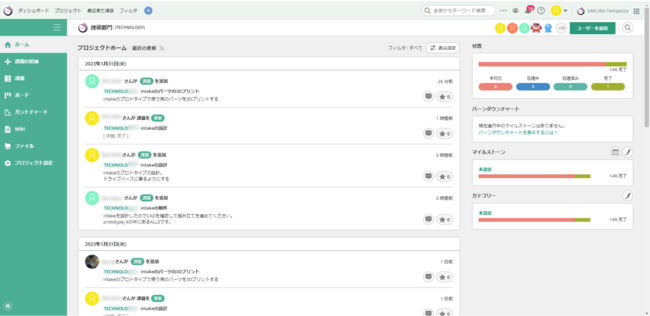 Backlogを活用し始めてからは、ハードウェアの設計・ソフトウェアのプログラミング・新メンバーの採用・総務管理部門・広報企画部門など、それぞれのプロジェクトを作成し、発生するタスクを課題として起票するようになりました。