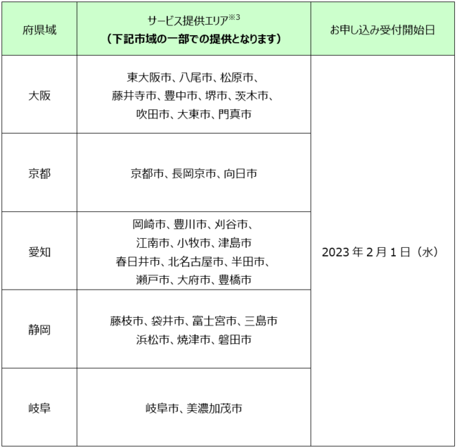 1. サービス提供拡大エリア及びお申し込み受付開始日について