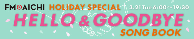 FM AICHIは3月21日(火・祝)、「FM AICHI HOLIDAY SPECIAL~HELLO&GOODBYE SONG BOOK~」を展開します。就職、転勤、卒業、進学など、誰もが迎える人生の節目とも言える、門出・旅立ちのシーズンでもあるこの日は、全ての生ワイド番組で「出会いと別れ」をテーマに選曲。愛知県内の新生活に向けた情報とともに桜の開花情報をご紹介していきます。さらに当日はSNSでリスナーから「この春のあなたの出会いと別れのエピソード」を募集し、番組内で随時紹介していきます。