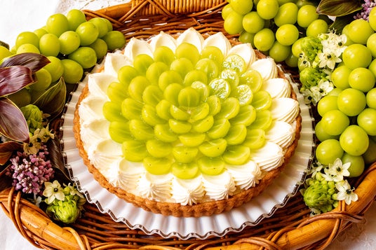 内容:瑞々しい葡萄とレアチーズのなめらかで濃厚な味わいの中に、はちみつ入りクリームの芳醇な香りが広がる贅沢タルト。