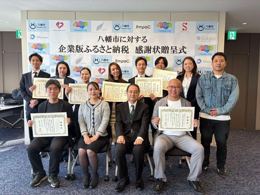2024年11月8日(金)、京都府八幡市にて株式会社SoLabo(本社:東京都千代田区、代表取締役:田原 広一)は、同市が寄附を募集している4つの事業のうち、子育て環境の充実や子どもの生きる力を育む「子どもが輝く未来の創生事業」、ブランド構築の推進やおもてなし環境の創出に取り組む「観幸のまちの創生事業」、創業支援や女性活躍などを含む「みんなで創る多機能な力を有したまちの創生事業」について、7社共同で企業版ふるさと納税と企業版ふるさと納税制度を活用した寄附を実施し、その寄贈式を開催いたしました。