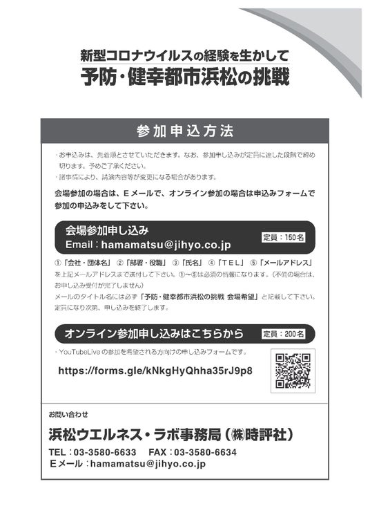 新型コロナウイルスの経験を生かして「予防・健幸都市浜松の挑戦」参加申込方法