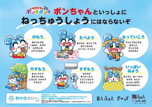 『熱中症ゼロへ』プロジェクト監修・6つの約束を子育て情報誌「あんふぁん」「ぎゅって」の公式キャラクター・ポンちゃんが子どもたちに分かりやすく伝えます