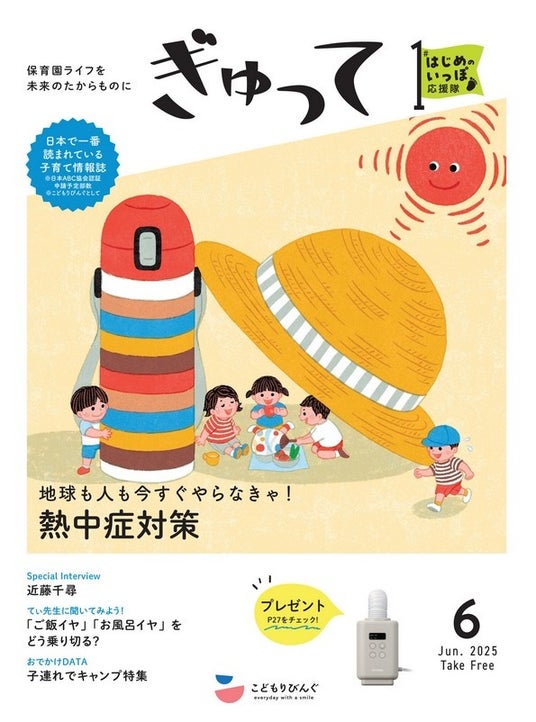 さらに、「あんふぁん」「ぎゅって」6月号(5月発行)ならびに先生のための情報誌「園ふぁん with 新 幼児と保育」6月号(5月発行)の巻頭でも、熱中症対策について特集。子どもたちが安心で快適な夏を過ごせるよう、幼稚園・保育園・こども園、そしてご家庭で役立てていただける内容となっています。
