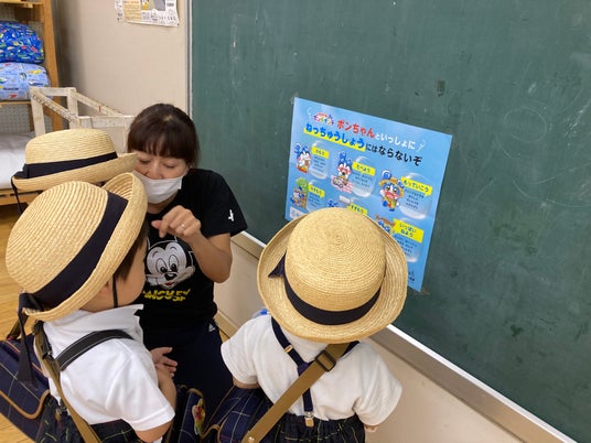 - 園では「ポンちゃんといっしょに ねっちゅうしょうにはならないぞ!ポスター」が掲示・活用されています