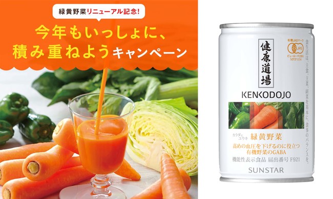 サンスターグループ(以下サンスター)は、同社の社員向け福利厚生施設『サンスター心身健康道場』の、人が本来持っている健康になろうとするチカラを高めるという理念をもとに生まれた健康食品シリーズ「健康道場」から、5種類の有機野菜100%の野菜飲料「カラダにユウキ 緑黄野菜」を、“高めの血圧を下げる”機能性表示食品として2022年1月18日(火)にリニューアル発売しました。それを記念し、1月25日(火)~2月24日(木)にお試し7缶セットが100名様に当たるキャンペーンを実施します。