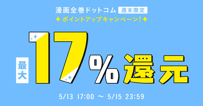 株式会社TORICO(本社:東京都千代田区、代表取締役社長:安藤拓郎)が運営するECサイト「漫画全巻ドットコム」、及びECアプリ「漫画全巻ドットコムアプリ」にて、最大17%ポイント還元キャンペーンを2022年5月15日(日) 23:59まで開催致します。