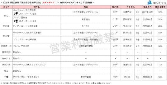 [住まいサーフィン]資産性の保たれやすいマンションがわかる首都圏エリア別「沖式儲かる確率上位マンションランキング」2026年2月版公表