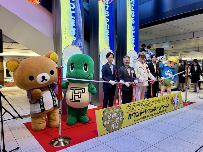 2024年3月16日に北陸新幹線福井・敦賀開業を迎えるのを記念し、始発駅となるJR東日本東京駅周辺施設等においてキャンペーンが実施され、県産食材・伝統工芸品の販売やカウントダウンボードの設置などが行われています。