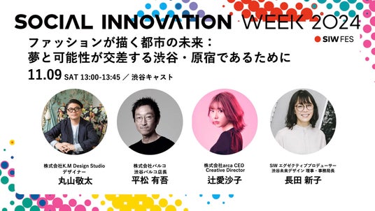 一般社団法人渋谷未来デザイン(代表理事:小泉秀樹、以下渋谷未来デザイン)が、10月18日(金)~11月10日(日)に開催するソーシャル&カルチャーデザインの祭典「SOCIAL INNOVATION WEEK 2024(以下SIW)」にて、11月9日(土)のSIW FESキーノートとして「ファッションが描く都市の未来:夢と可能性が交差する渋谷・原宿であるために」が決定しましたのでお知らせします。