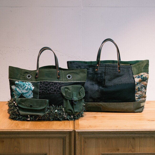 (4)“Local Made Military Items”をコンセプトに、1940~80年代の米軍アイテムをデザイナーKen Naoiの手で解体・再構築してバッグや小物を制作する<Room No.6>とのコラボレートアイテムとして、互いの特徴的な素材を組み合わせ、ハンドメイドで作られた一点物のバッグ