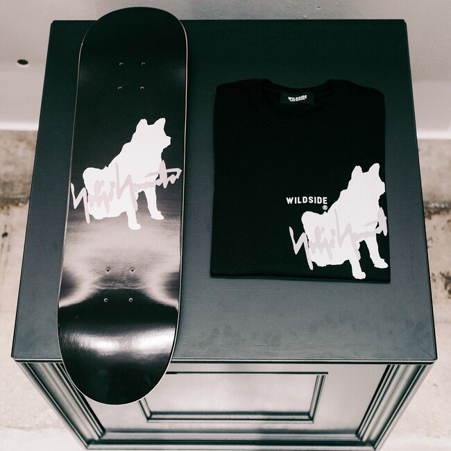 また<WILDSIDE YOHJI YAMAMOTO>オリジナルからは、デザイナー山本耀司の愛犬である“凛”をモチーフとしたTシャツ、フーディー、スケートボードを大阪店限定で発売。