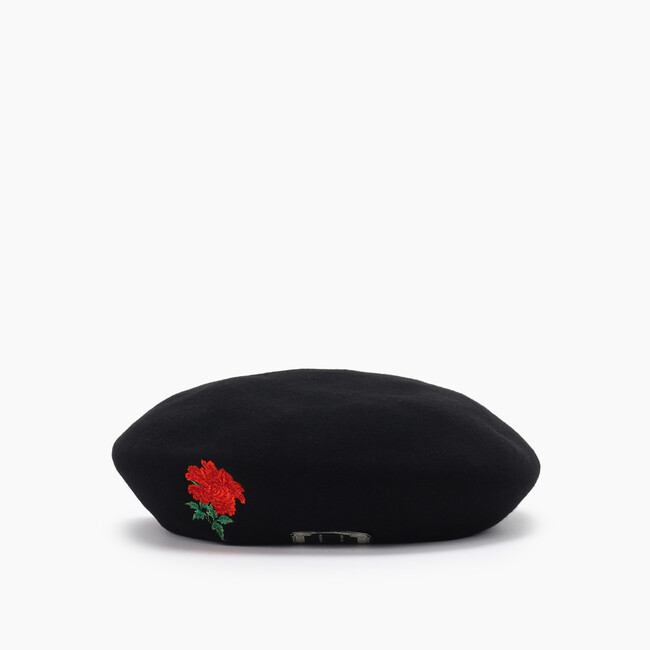 (2)拘り抜いた製法により1930年代以前に見られた職人技による品質の高さと、1940年代以降に活躍したミリタリー製品の機能性を併せ持つ帽子を作る<THE H.W.DOG&CO>より、リアルな“牡丹”の花を刺繍で施し、ブランドのシンボルとなる紙タグをオールブラックに変更したWILDSIDEエクスクルーシヴモデルのベレー帽