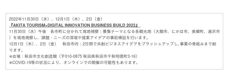 ■『AKITA TOURISM INNOVATION BUSINESS BUILD 2022』開催概要
