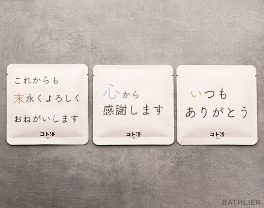 大人になると、照れくさくて感謝の気持ちをなかなか直接伝えられないもの。「コト浴 セレクションセット」には、そんなあなたの想いをメッセージにしたためて同封しております。