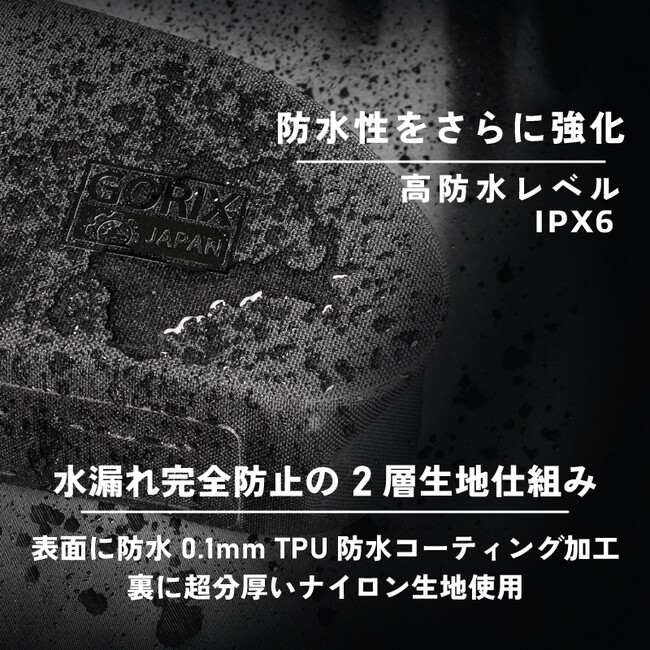 高防水レベルIPX6---水漏れ完全防止の2層生地仕組み