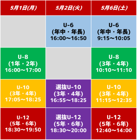 ※通常スクールとは時間が異なりますので、ご確認ください。