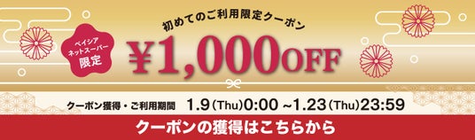 「ベイシアネットスーパー」で初めてお買い物をされるお客様限定で、1月9日(木)より1,000円OFFクーポンをプレゼントいたします。