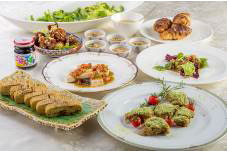 オリジナルメニューは何度も試作・試食を重ね、「ごはんですよ!」の風味を損なわず、かつ朝食にふさわしいレシピを16品考案いたしました。だし巻き玉子やとろろ、油淋鶏、ポキなどの和洋中を問わないおかずのほか、クロワッサン、マンゴージャムなどデザート感覚でお召し上がりいただける料理もご用意いたします。