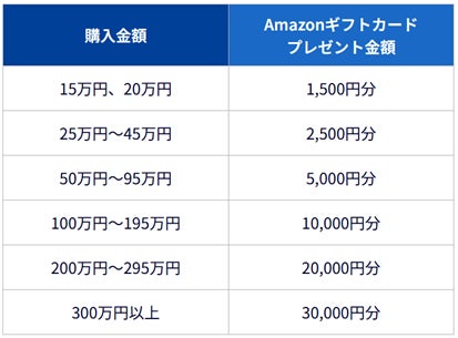 購入者全員を対象に購入金額に応じてもれなくAmazonギフトカードをプレゼントいたします。