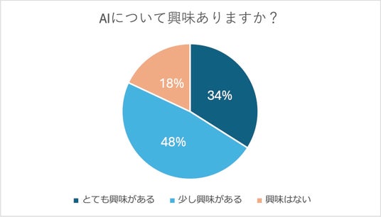 AIに対する興味を聞いたところ、「とても興味がある」が約34%、「少し興味がある」が約48%で、合わせると80%以上のママたちが興味を持っています。