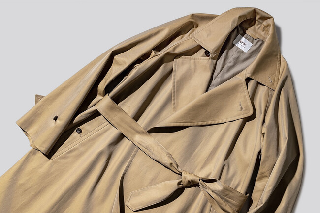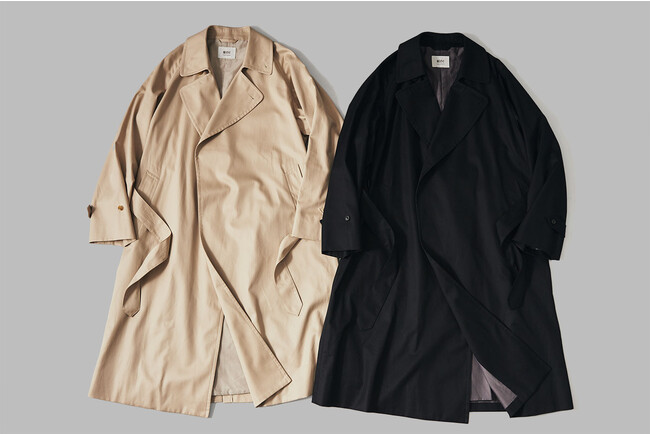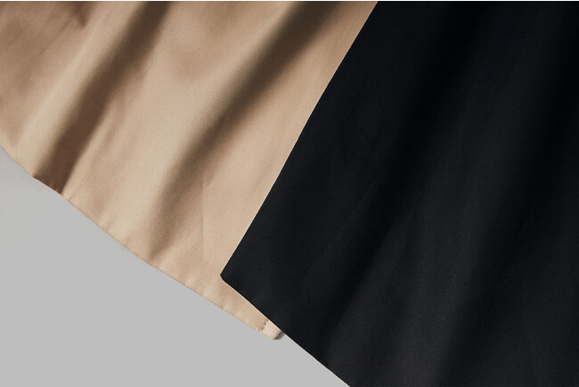 素材には昨年好評だったコットンギャバジンを採用。 1本1本の繊維が長く細い“超長綿”で紡績した糸を3本撚りにして織り上げることで、しなやかさとハリコシ、シルクを思わせる美しい光沢を備えた、ハイクオリティな生地に仕上がっています。 さらに撥水、花粉防止加工を施すことで、機能性もプラス。 今季は新色となる「ミルクベージュ」(写真左)と「ブラック」(写真右)、昨年から継続となる「ベージュ(ソラーロ)」、「アイスベージュ」のラインナップになっています。