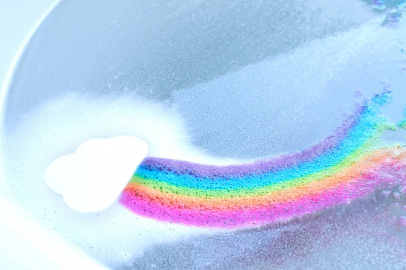 そっとお湯に浮かべるとしゅわしゅわと溶け出し、バスタブはカラフルな虹でいっぱいになります。