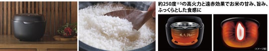 ※1 2019年発売~2025年3月20日までの国内累計出荷台数(自社調べ) ※2 2019年および2024年の同年4月1日~翌3月31日におけるご泡火炊きシリーズ販売合計金額の比較(自社調べ) ※3 同年4月1日~翌3月31日におけるご泡火炊きシリーズ販売合計金額の比較(自社調べ) ※4 JRX-S100において「白米・標準」メニュー4合、炊きわけ「しゃっきり」、火かげん「強」炊飯時。内なべ外側底面の温度(自社調べ)。JRX-S060は約250度。