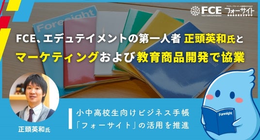 これにより教育界のグローバルアワード「Global Teacher Prize」で世界トップ10に選出された経験を持つ正頭英和氏がFCEの展開する教育事業に参画します。具体的には小中高校生向けのビジネス手帳「フォーサイト(以下、フォーサイト手帳)」の開発・展開において、正頭氏の実践知とアイデアを活かした支援を受けることで、教育現場のリアルなニーズに即したサービスの展開を加速してまいります。