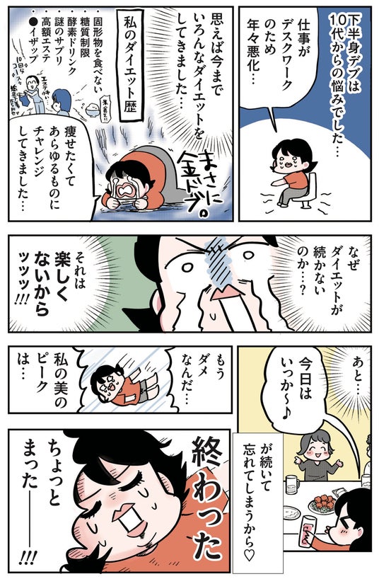 ずっと下半身太りに悩み、運動ジムや糖質制限などあらゆるダイエットをしてきた杏樹先生。痩せては太っての繰り返しで、もう自分のピークは過ぎたと諦めかけていました。