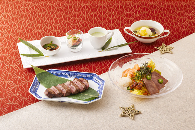 また、ディナータイムには、神戸ビーフサーロインと九州産黒毛和牛ヒレを食べ比べいただける豪華なペアリングディナーをご用意。天の川に見立てた前菜から七夕を感じていただき、ロブスターのソテーは一尾をおふたりでシェアしながら、鮑はバターソテーまたは海塩蒸しのどちらかをお選びいただけるので、それぞれの味わいを楽しむことも可能です。鉄板焼の醍醐味と、七夕の季節感を味わうコースメニューをぜひこの機会にご堪能ください。