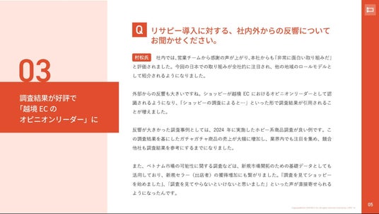 外部からの反響も大きいですね。ショッピーが越境EC におけるオピニオンリーダーとして認識されるようになり、「ショッピーの調査によると…」といった形で調査結果が引用されることが増えました。