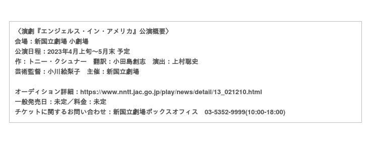 フルオーディション 第5弾は『エンジェルス・イン・アメリカ』!2023年4~5月に二部作を一挙上演します!!