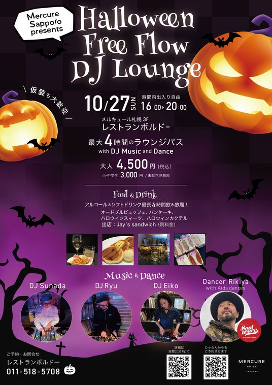 メルキュール札幌(所在地:札幌市中央区南4条西2丁目2-4 総支配人:カーセル クリストファー) は、2024 年10月27日(日)『Halloween Free Flow DJ Lounge』を開催致します。3人のDJ、そしてダンサーたちが会場を盛り上げます。キッズダンサーによるクールで可愛いダンスタイムにも注目です。