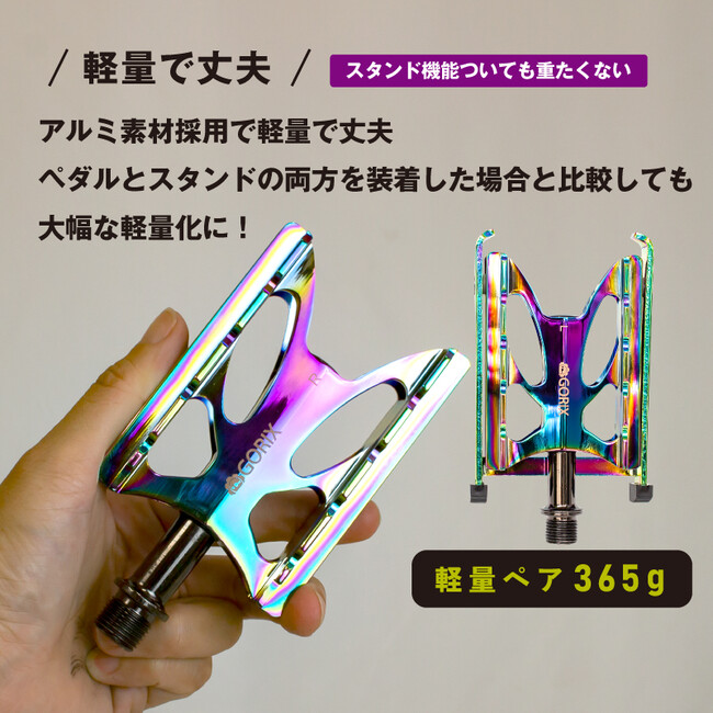 ペダル本体もペアで超軽量の365g。スタンド機能が付いてても重たくないです。