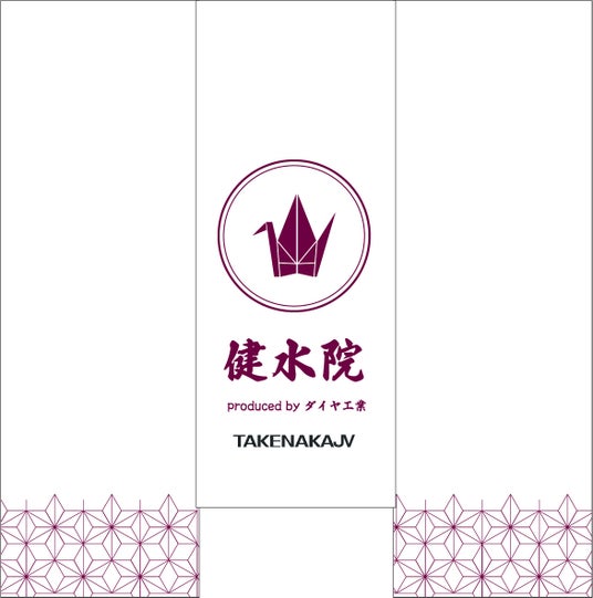 暖簾のデザインは、健康長寿として縁起の良い「鶴亀」の”鶴”から着想しました。建設技能者の疲れた心身を、ホッと一息つけるオアシスのような「健水院」で心身ともに癒していただくことで、「また頑張ろう」と心から活力が溢れ、健康寿命の延伸をサポートできる存在になるように願いを込めています。