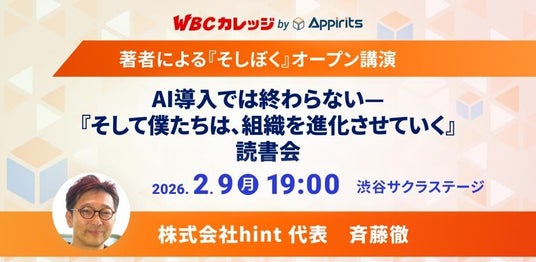 株式会社アピリッツは、ワーキンググループ”WBCカレッジ”を定期開催しており、この度『そして僕たちは、組織を進化させていく』の著者である、斉藤徹氏にご登壇頂きオープン講演会を開催いたします。