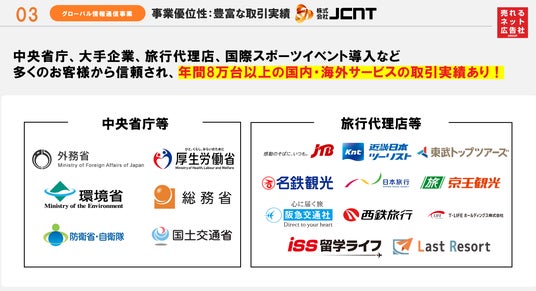 売れるネット広告社グループ株式会社(本社:福岡県福岡市、代表取締役社長 CEO:加藤公一レオ、東証グロース市場:証券コード9235、以下 売れるネット広告社グループ)のグローバル情報通信事業・連結子会社である株式会社JCNTの2025年11月の国内教育旅行向けレンタルサービスの受注が前年同月比で160%を超え、想定以上の反響をいただいております。。
