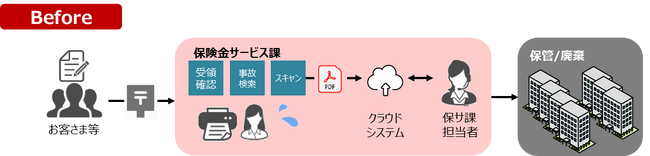 これまでは、全国各地の保険金サービス課で社外からの郵便物を受領・開封し、スキャンによるイメージデータ化を必要に応じて実施してきました。