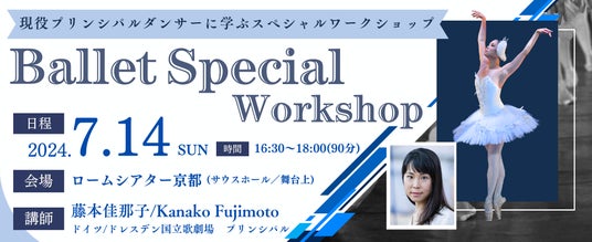 特別ワークショップ開催決定! 7月14日(日)、ロームシアター京都サウスホールにて、舞台上特別ワークショップの開催が決定しました。講師を務めるのは、同日に開催されるマーティプレバレエコンクールvol.23京都にて、特別審査員を務める藤本佳那子氏です。